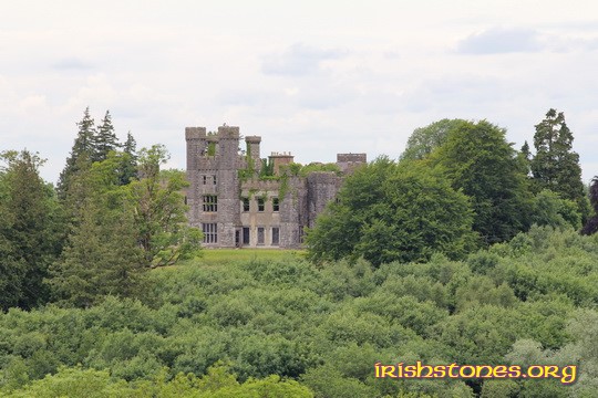 | A zoomed photo of Castle Saunderson. In the 14th century, a first castle was built there by the O'Reillys of Breffni, thus it was originally known as Breffni Castle. During the Ulster Plantation the Saunderson family acquired the original building. Three centuries later, the castle was sold in 1977 to a businessman who wanted to use it as his residence, but the project failed. It was turned into a hotel a few years later, but it was damaged by fire, the third in its history. Now it's in ruins. |